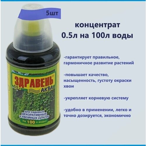 Комплексное удобрение Здравень Аква (5шт по 0,5л), жидкий концентрат для садово-декоративных и хвойных культур