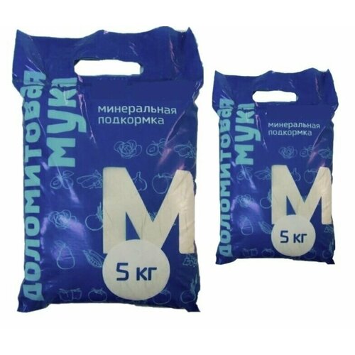 Мука доломитовая, 2 упаковки по 5 кг, крошка, для известкования кислых почв, улучшения структуры и плодородности почвы, повышает урожайность культур