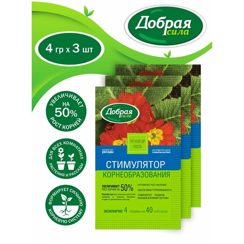 Комплект Добрая сила Стимулятор корнеобразования Корневин, пакет 4 гр. х 3 шт.