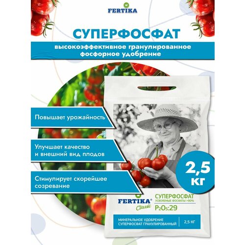 Удобрение Fertika "Суперфосфат", фосфорное, гранулы, универсальное, 2.5 кг
