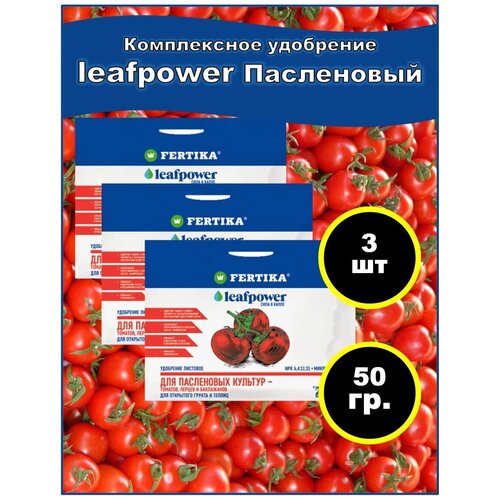 Удобрение фертика Leaf Power 50 г для пасленовых культур: томатов (помидор), перца и баклажанов NPK 6,2:11:31+микро. Набор 3шт