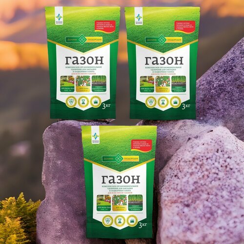 Комплексное органоминеральное удобрение газон, для всех типов газонов 3кг / 3шт. Долина плодородия
