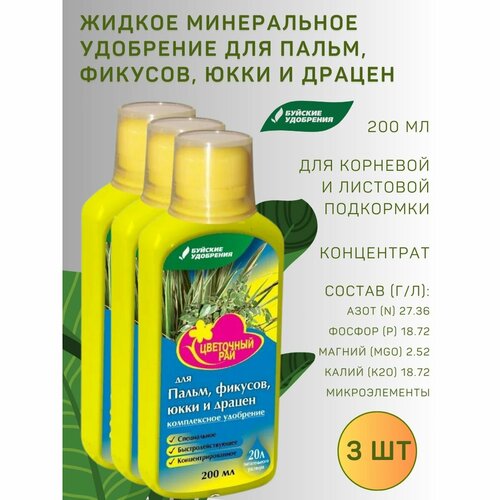 ЖКУ "Цветочный рай" для пальм, фикусов, юкки и драцен, 0,2 л, 3 шт