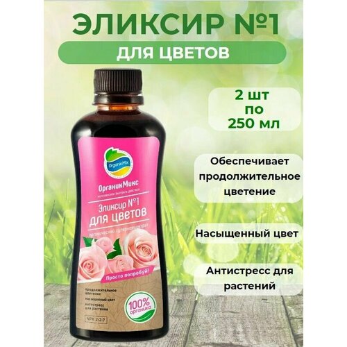 Органическое удобрение Эликсир №1 для цветов. Увеличивает продолжительность цветения, антистресс для растений, 2 штуки по 250 мл