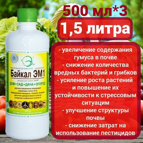 Байкал ЭМ1, 500мл*3шт./Удобрение для восстановления плодородия
