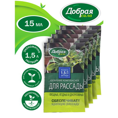 Комплект Добрая сила Жидкое органо-минеральное удобрение Для рассады 15 мл. х 5 шт.