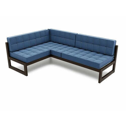 Садовый диван угловой СЕГА-У-С левый синий-венге, велюр, массив дерева, скандинавский лофт, для бани, на террасу