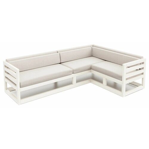 Садовый диван угловой СЕГА-У-С левый, серый-белая эмаль, деревянный, в гостиную, в прихожую, на балкон, скандинавский