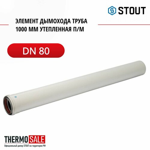 Элемент дымохода DN 80 труба 1000 мм утепленная п/м STOUT SCA-0080-801000