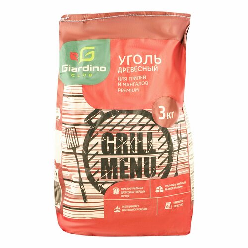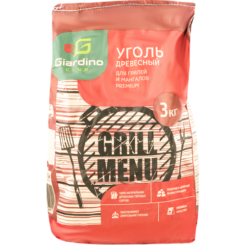 Уголь древесный для грилей и мангалов GIARDINO CLUB Premium, Арт. 111098, 3кг