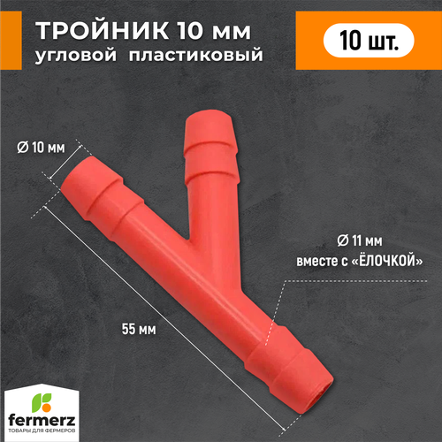 Тройник 10мм пластиковый Y образный 10 шт красный