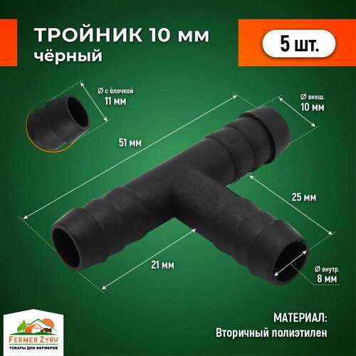 Тройник 10мм пластиковый Т образный - 5шт черный. Фитинг переходник 10 мм для трубки для шланга