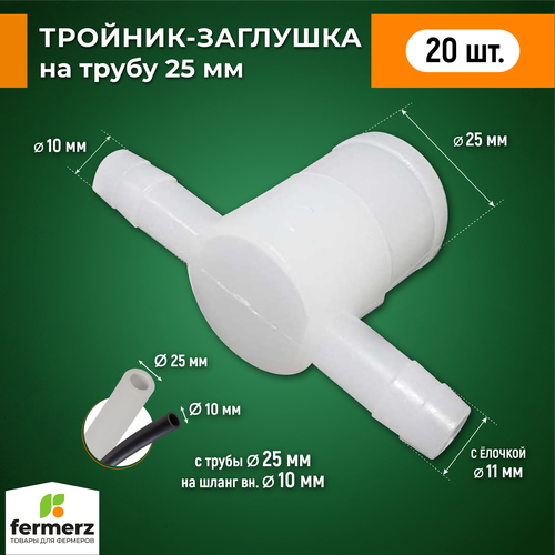 Заглушка тройник на трубу 25мм . Комплект 20шт