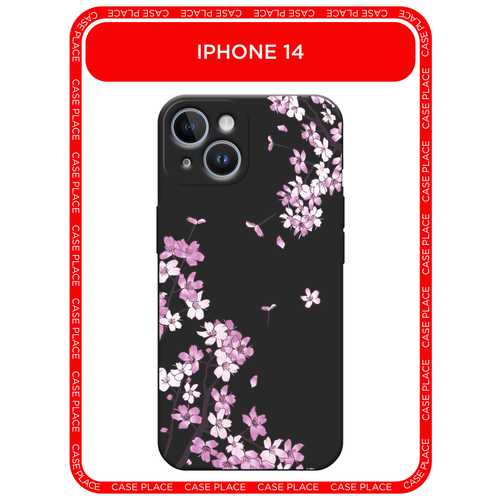 Черный матовый чехол на Apple iPhone 14 / Айфон 14 с принтом Сирень рисунок