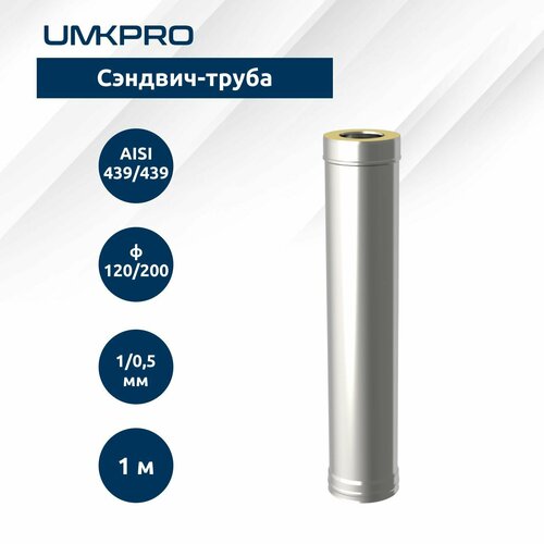 Сэндвич-труба для дымохода 1 м UMKPRO, D 120х200, AISI 439/439, 1,0мм/0,5мм