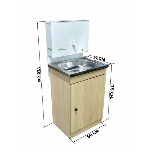Умывальник "Весна" с ЭВН пласт. бак, ламиниров. тумба, нерж. мойка