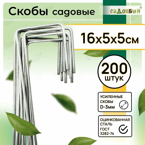 Скобы садовые Г-формы, размер 16см х 5см х 5см, d-3мм, (200 шт)