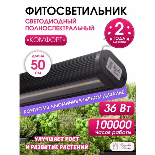 Фитолампа для растений и рассады "Комфорт", полного спектра, "Красивая грядка", длина 50 см