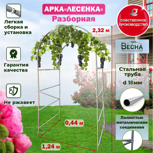 Арка садовая металлическая "Лесенка разборная", высота 2,32м ширина 1,24м глубина 0,44м, для вьющихся растений, пергола