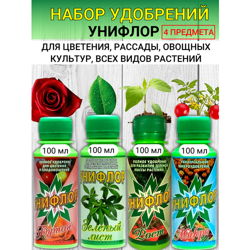 Набор удобрений Унифлор Бутон + Зеленый лист + Микро + Рост по 100 мл