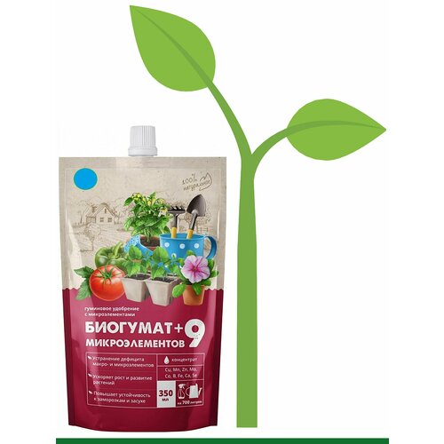 Регулятор роста "Гумат+9 микроэлементов" 0,35 л. Для подкормки всех видов садовых и комнатных культур, увеличивает продуктивность плодовых растений