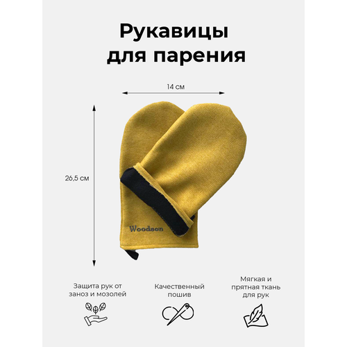 Рукавицы для парения в бане и сауне из микровелюра Woodson, горчичного цвета, для обеспечения безопасной подачи воды на камни