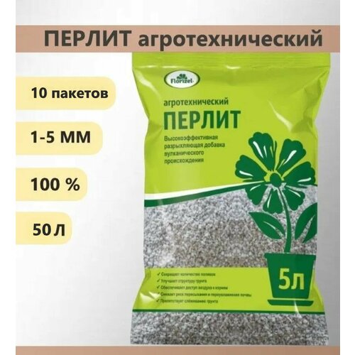Агроперлит 10 упаковок по 5 л, субстрат с размером частиц 1-5 мм; минерал вулканического происхождения для удержания влаги в почве и терморегуляции