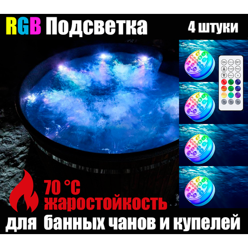 Подсветка RX RGB для банных чанов, купелей, бассейнов, IP68, 7см, 4 шт.