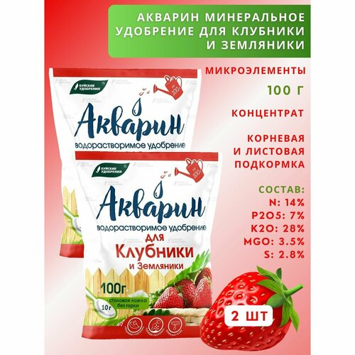Удобрение Акварин водорастворимый "Для клубники и земляники", 100 г, 2 шт.