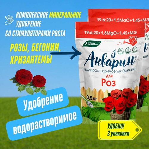 Комплексное удобрение Акварин для роз 2 упаковки по 500 гр (1 кг), Буйские Удобрения
