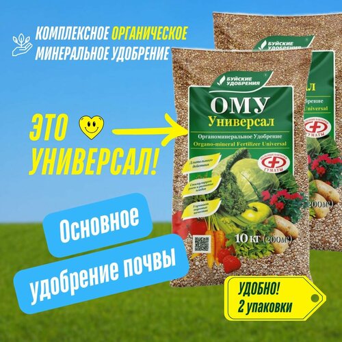 Комплексное гранулированное органоминеральное удобрение ОМУ Универсал, Буйские удобрения 2 упаковки по 10 кг (20 кг)