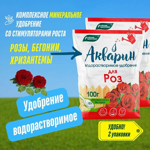 Комплексное удобрение Акварин для роз 2 упаковки по 100 гр (200 гр), Буйские Удобрения