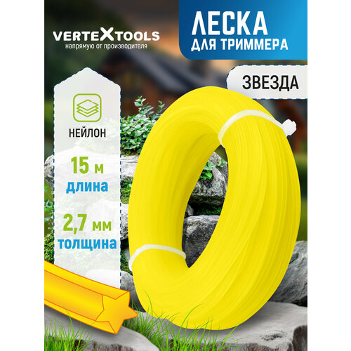 Леска для триммера VERTEXTOOLS 2.7 мм, звезда 15 м