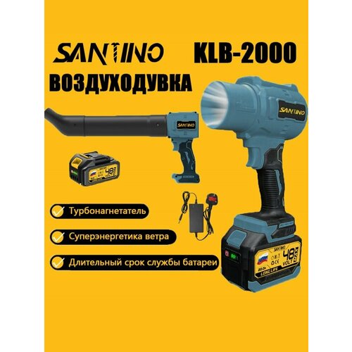 Воздуходувка SANTINO KLB-2000, 2000Вт, 7м/с, 10Ач, управление на рукоятке, синяя