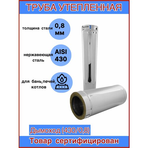 Труба утепленная для дымохода Ф150х250 (430/0,8х430/0,5) Д=1000мм CORAX