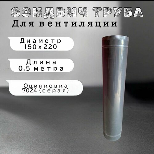 Сэндвич-труба для вентиляции 0,5м, 150х220, оцинкованная сталь, 7024/серая