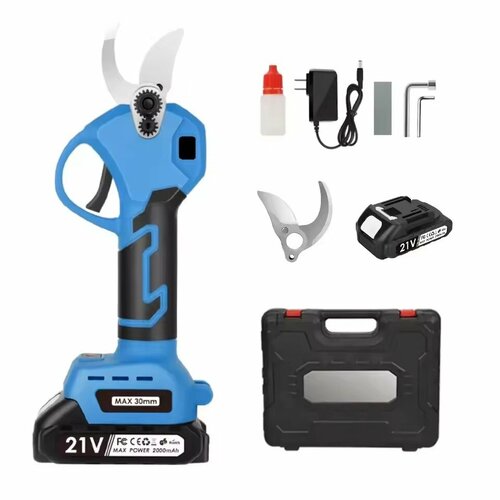 Секатор аккумуляторный 2 акбм 30 мм разрез/ Электросекатор двухсторонний до 8 часов без заряда