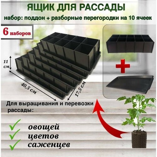 Ящик для рассады У10 поддон и 10 ячеек Х 500 мл - набор 6 шт