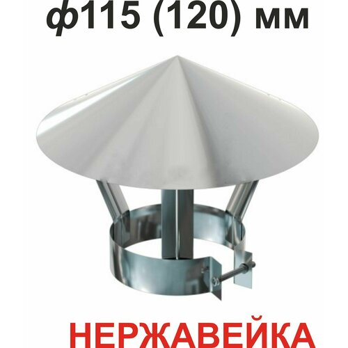 Зонт нержавеющий ф115 - ф120 мм с хомутом для дымовой трубы Универсальный