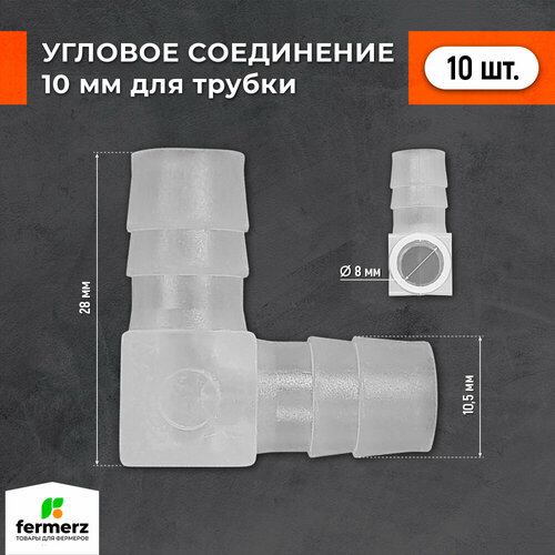 Уголок 10 мм для соединения трубки. Комплект 10 штук