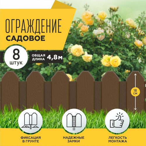 Заборчик садовый пластиковый PlastON, 8 шт. по 60 см, декоративное садовое ограждение для клумбы