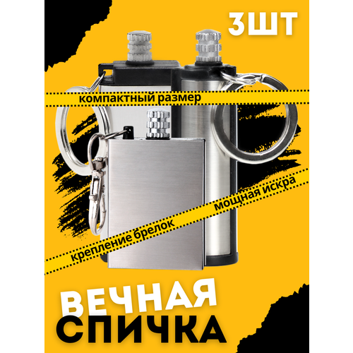 Огниво туристическое "Вечная спичка", походное, серебристое (3 штуки), не заправлено, пустое