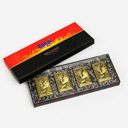 Набор бензиновых зажигалок "Волк", 4 шт, 23 x 18 x 3 см, бронзовые
