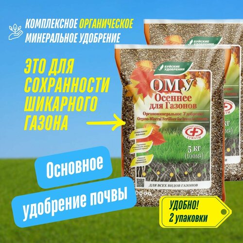 Комплексное органоминеральное удобрение ОМУ Осеннее для Газонов, Буйские удобрения 2 упаковки по 5 кг (10 кг)