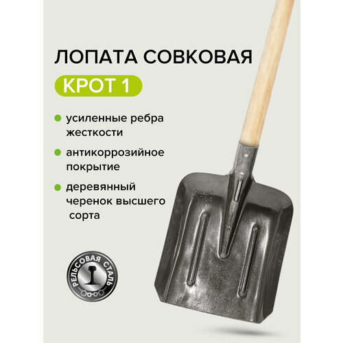 Лопата совковая с деревянным черенком, рельсовая сталь, крот