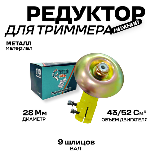Редуктор нижний усиленный для триммера/для мотокосы 9 шлицов, 28мм (430, 520) 43/52 см3