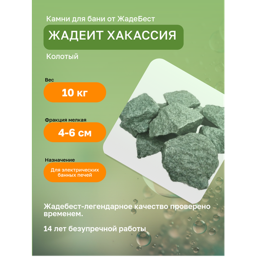 Жадеит Хакасия ЖадеБест колотый мелкая фракция 4-8 см для бани и сауны для электрических печей, 10 кг в экологичной упаковке