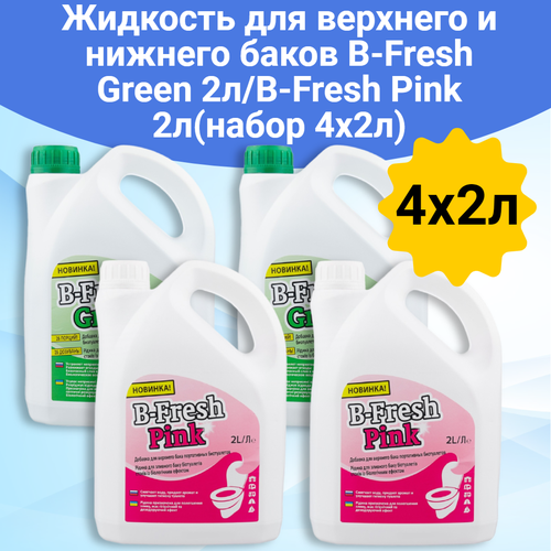 Жидкость для биотуалета Thetford для верхнего и нижнего баков B-Fresh Green 2л/B-Fresh Pink 2л(набор 4x2л)