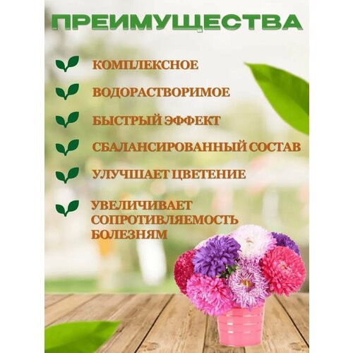 Преимущества микроудобрения:1/ Комплексное, жидкое, концентрированное;2/ Быстрый, видимый эффект;3/ Сбалансированный состав;4/ Способствует стабильному росту, сочности и яркости новых листьев;5/ Стимулирует развитие корневой системы и новых побегов;6/ Увеличивает сопротивляемость растений небл
