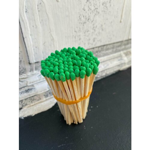 Спички длинные 75 мм, ярко зеленые, 100 шт. (пучок больших спичек с цветной головкой), без чиркало